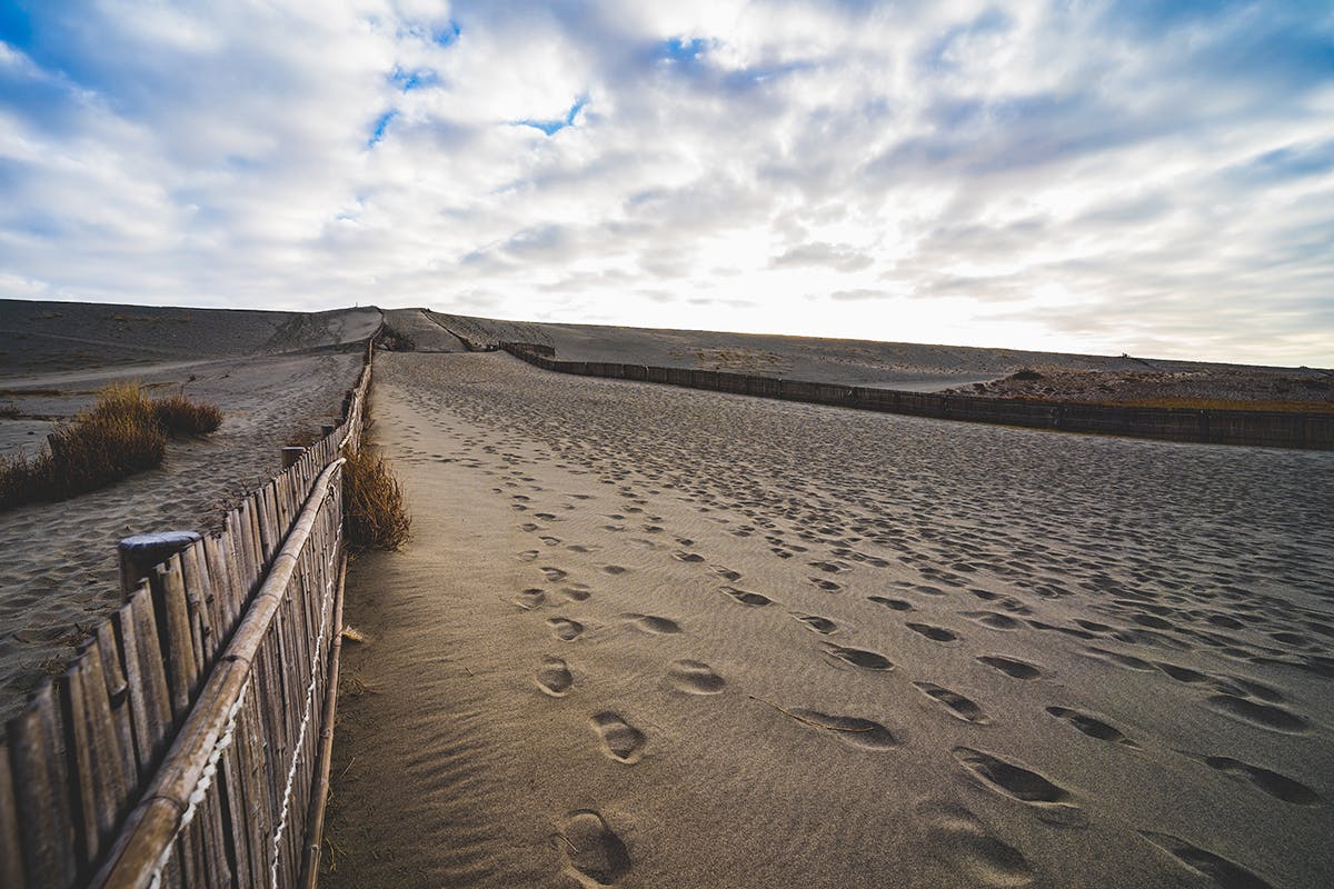しかし、近年の防波堤工事や砂浜の侵食や海岸の侵食の影響で年々砂が減り砂丘全体が小さくなってきているという事を記事で発見し知りました。また、私の親からは「昔はもっと砂の量が多くていくら歩いても海が見えなかった」という話を聞き、正直心が苦しかったです。私自身、プライベートや撮影で何度が訪れたことがありましたが、この素晴らしい風景がいつか無くなってしまうのか...と。