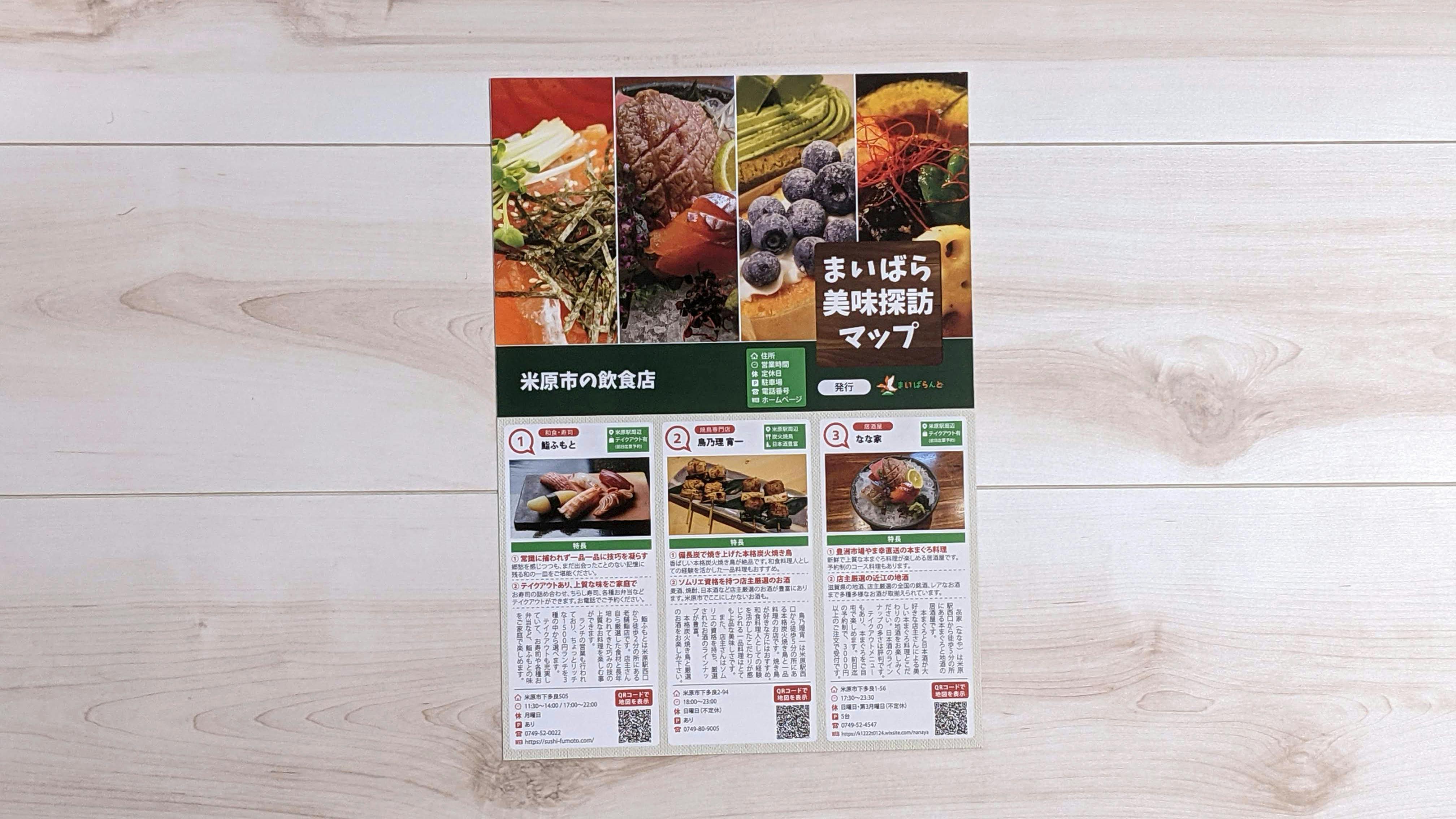 米原市の飲食店・カフェをPRするチラシ「まいばら美味探訪マップ」を作成します。このチラシの配布を通じて、米原市の飲食店を盛り上げたいと思っています。コロナ禍が落ち着いたらまた米原市の飲食店が賑わうように、まずは知ってもらう事から始めたいと思います。米原市の飲食店を多くの方に知って頂く事で、ゆくゆくは米原市の発展にも繋がると信じています。