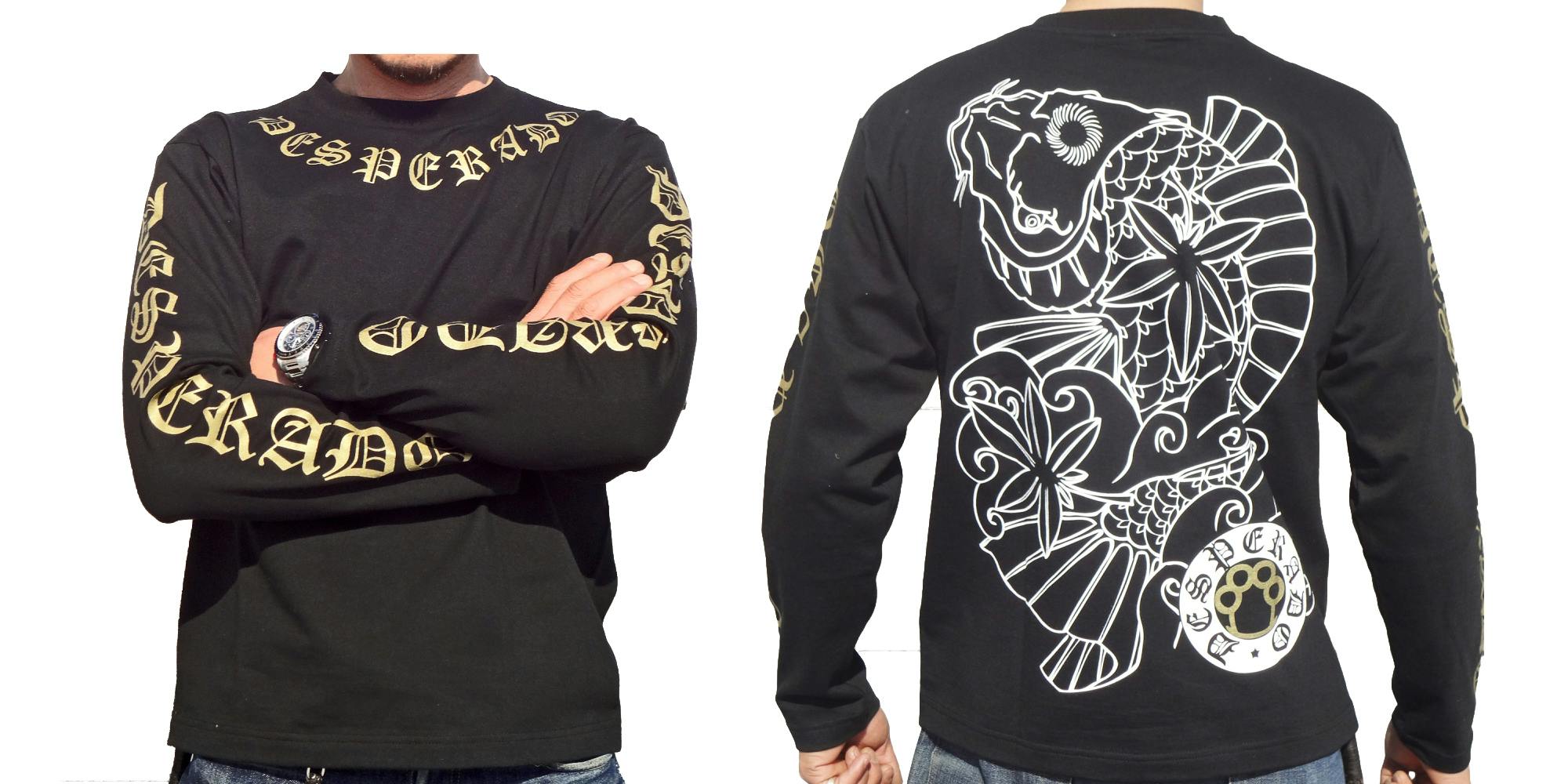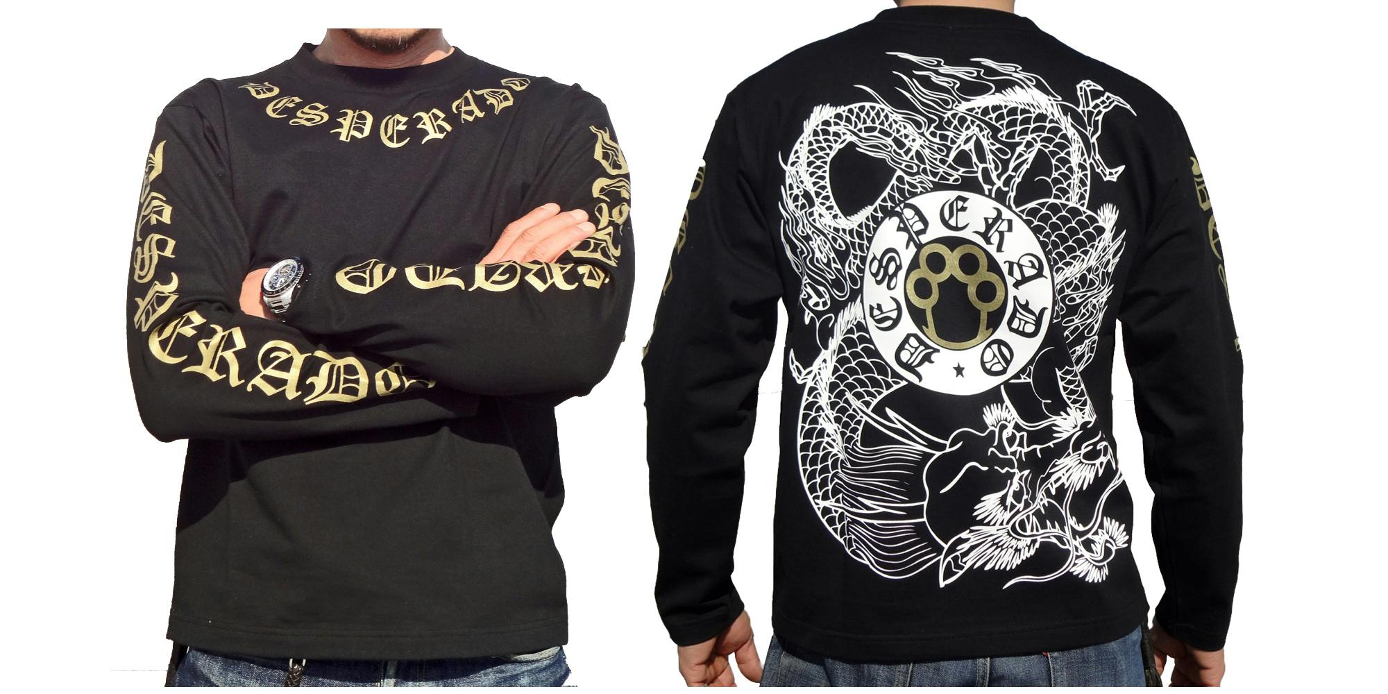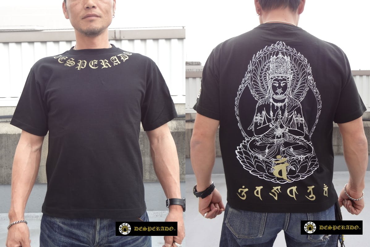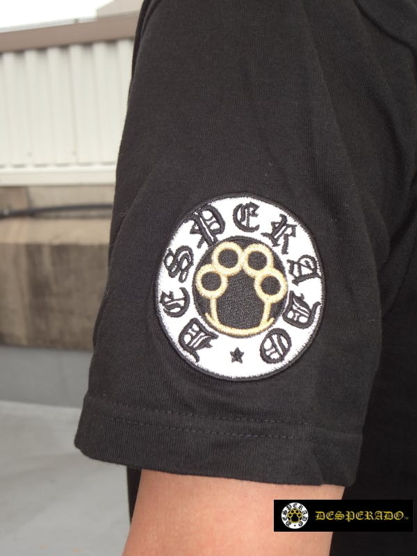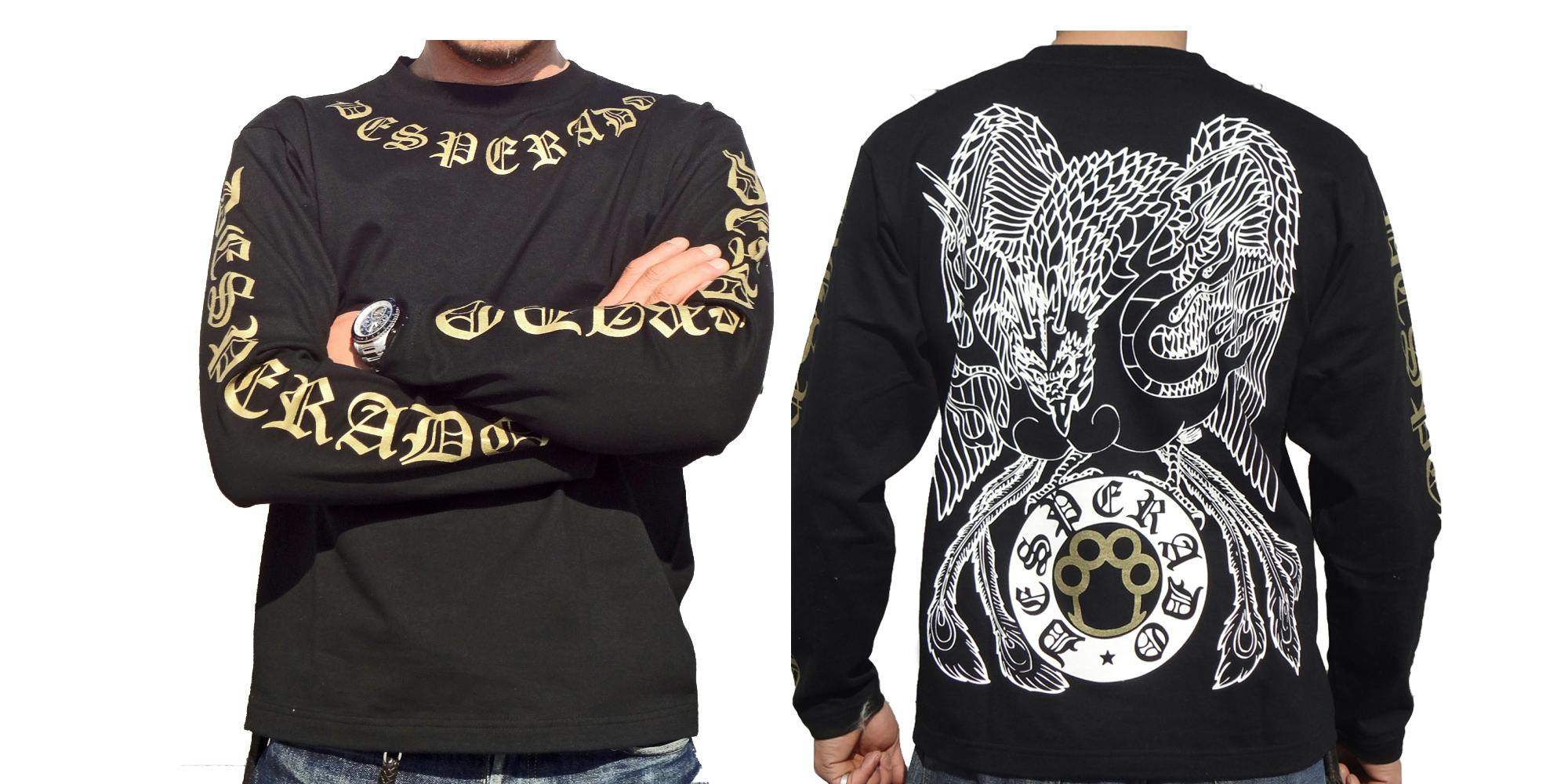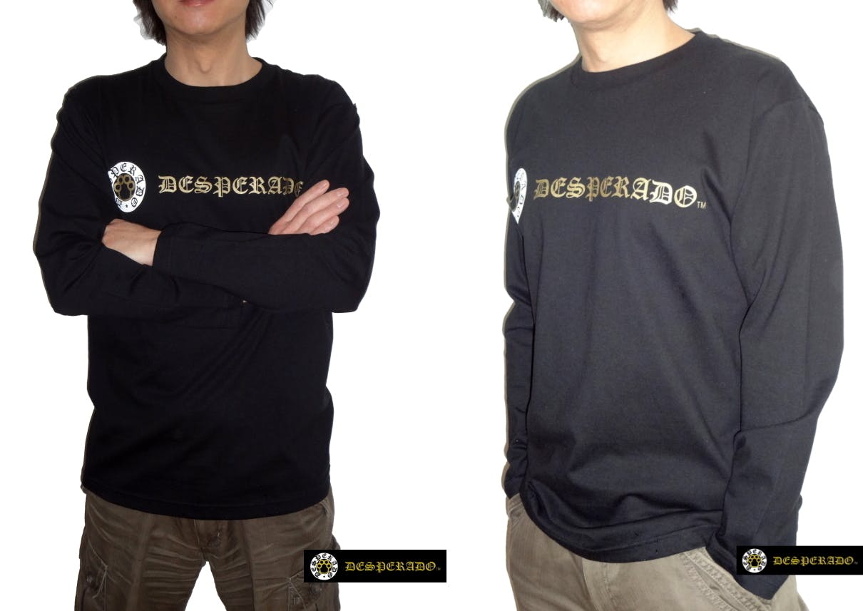 首元と袖にDESPERADO(金粉プリント)の文字。