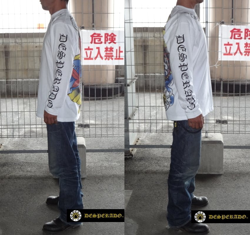 首元に【DESPERADO】の文字(金粉プリント)が入っております。