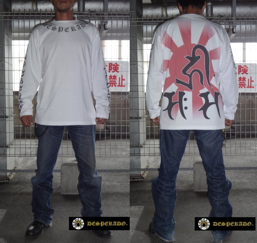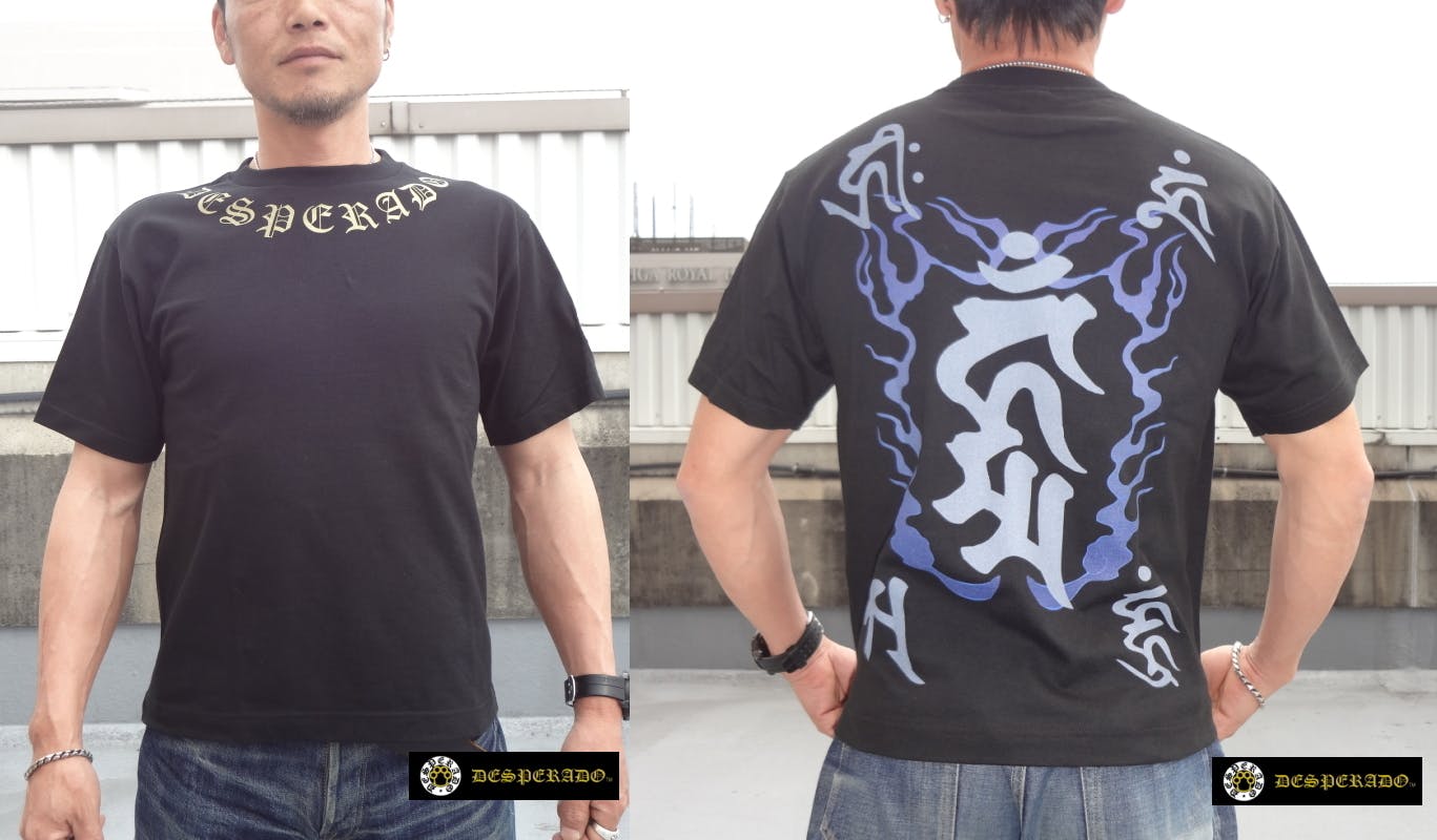 左肩に【DESPERADO】ロゴ刺繍、バックの梵字と