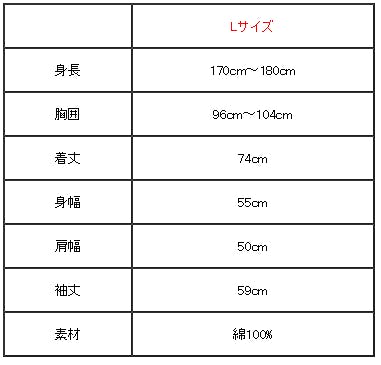 サイズ:Lサイズのみ(通常LLサイズ着用の方で、ちょうど良い大きさです)