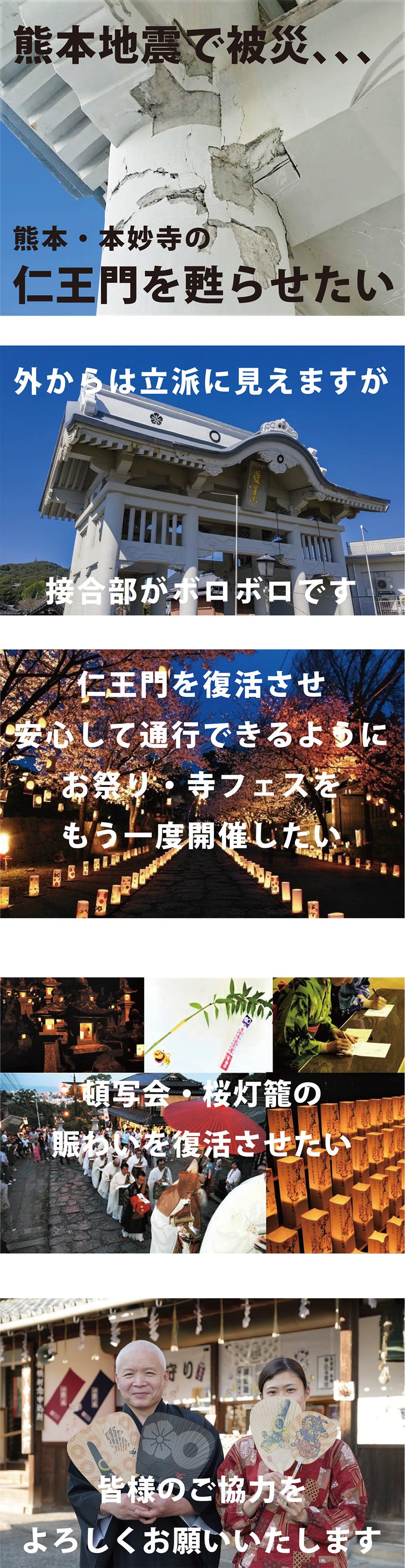 私たちも熊本地震という災害に直面し 大きな試練の中で100年前に建てられた数少ない鉄筋コンクリートの仁王門を未来に向けて残す事業に立ち上がりました。