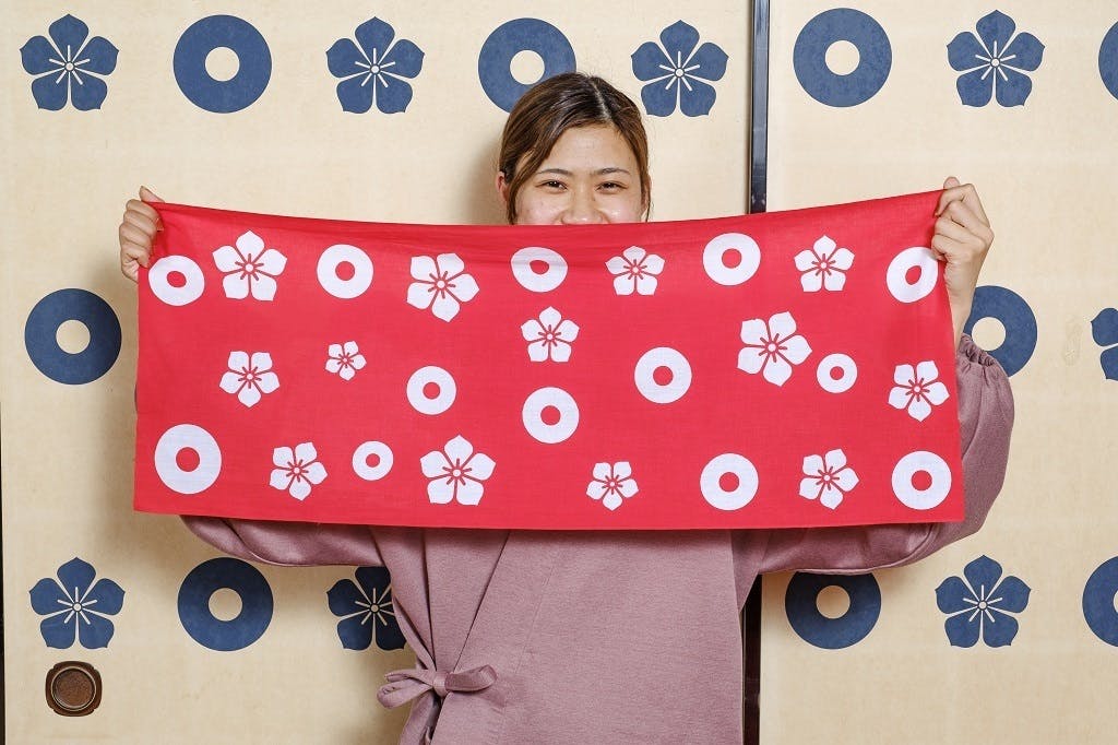 和手ぬぐい 蛇の目桔梗紋 (朱赤系)