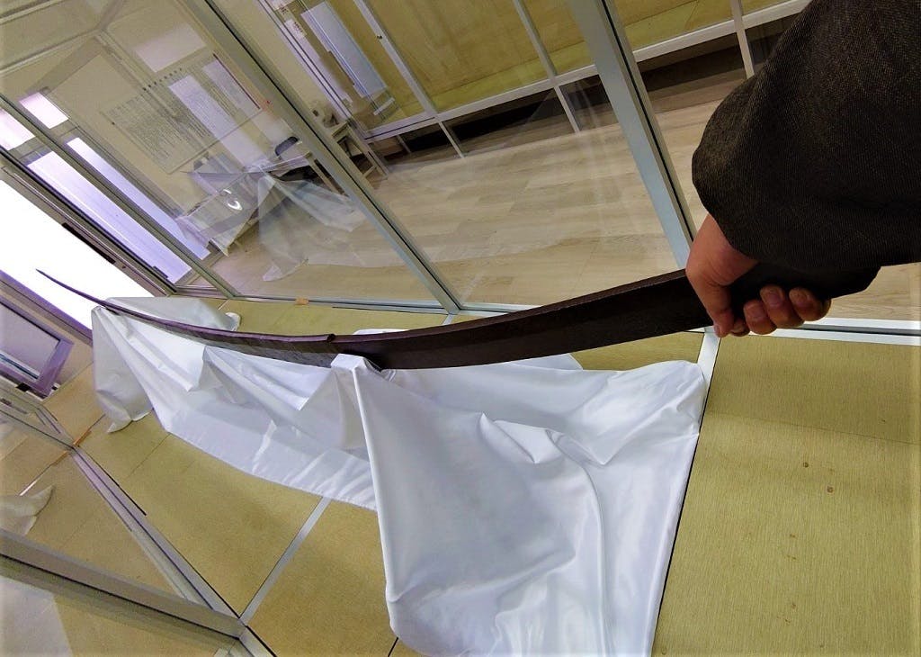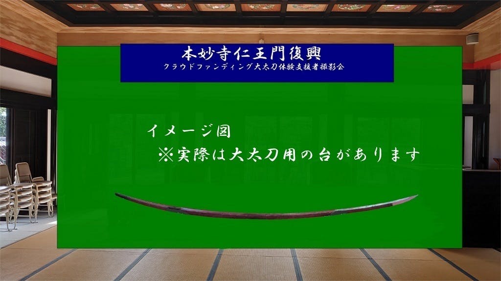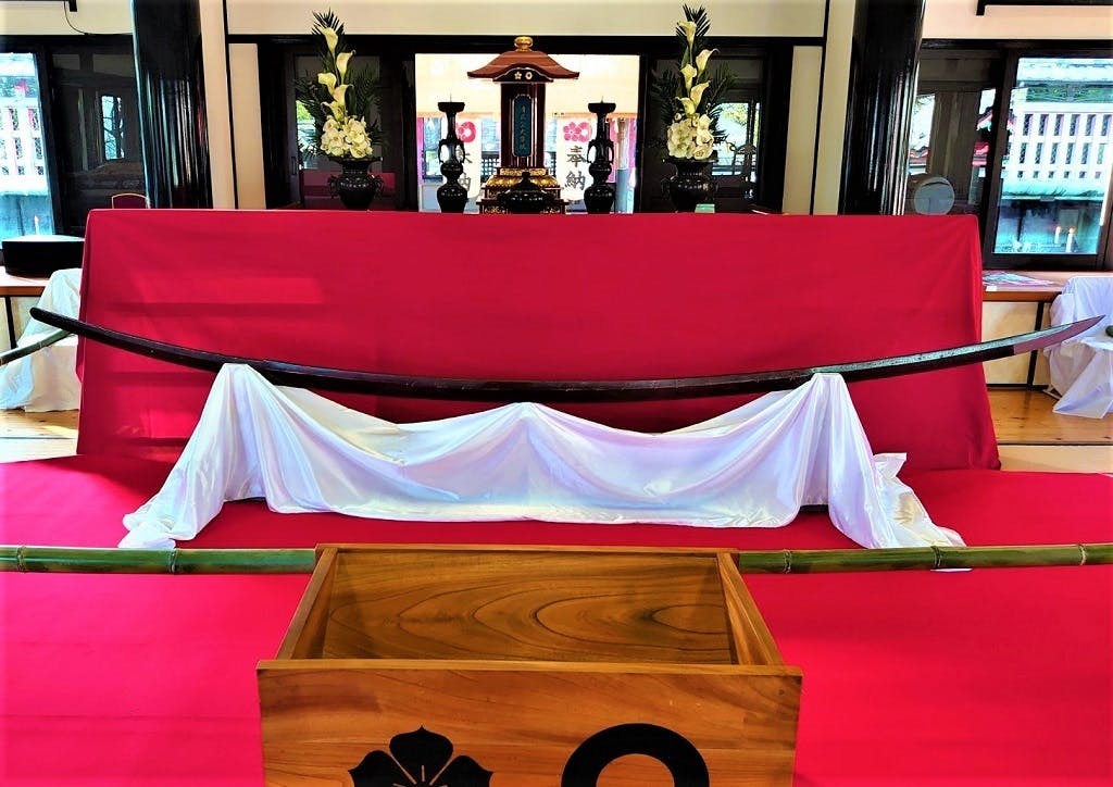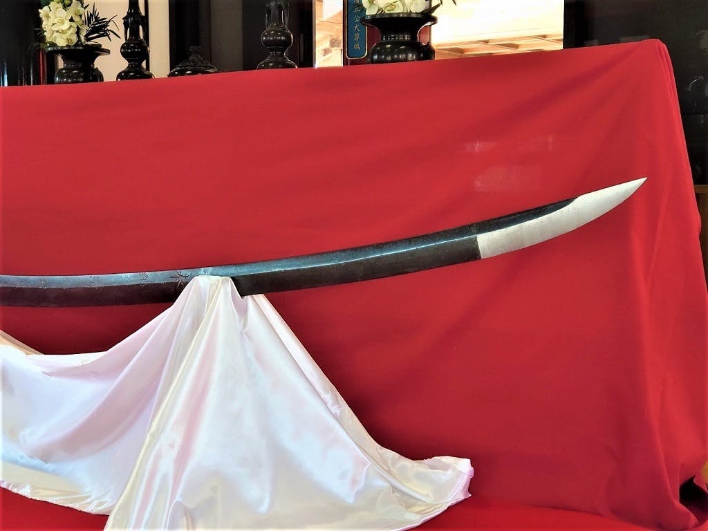 この大太刀に直接触れ 刀剣の質感、重量を体感していただきます。撮影も近くから自由にできます。