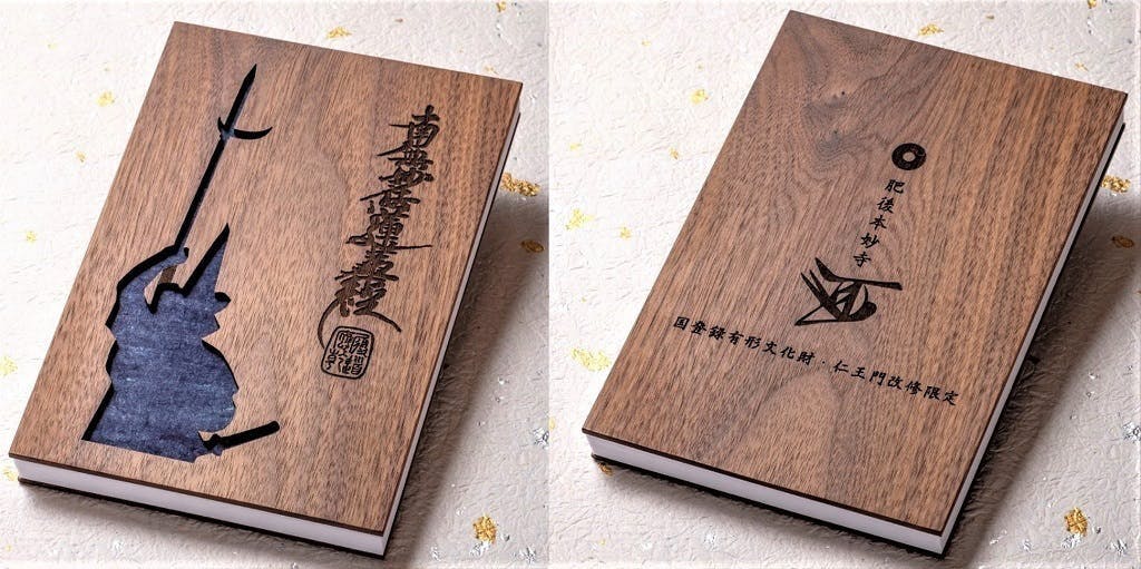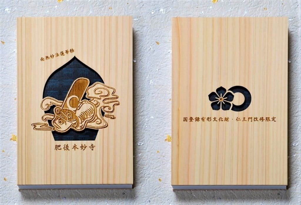 肥後本妙寺が初めて作るクラウドファンディング限定の御朱印帳です。檜の板に烏帽子兜をかぶった張子の虎をあしらったかわいいデザインです。