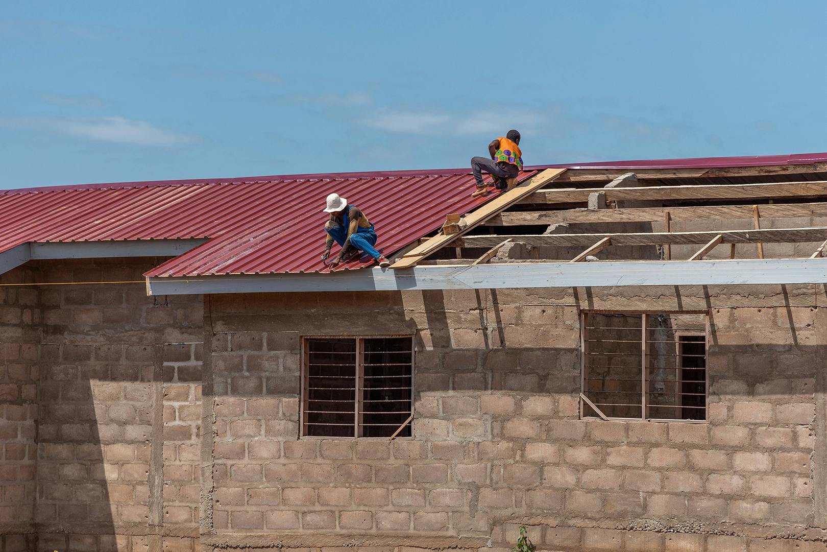 昨年冬の校舎屋根建設の様子
