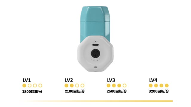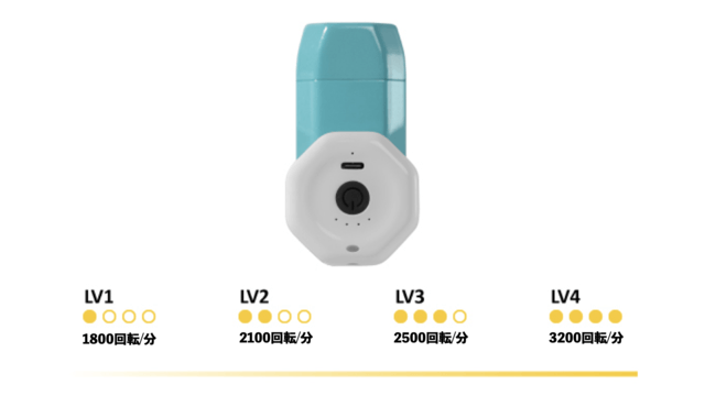 振動回転数:1800(Lv.1)、2100(Lv.2)、2500(Lv.3)、3200(Lv.4)