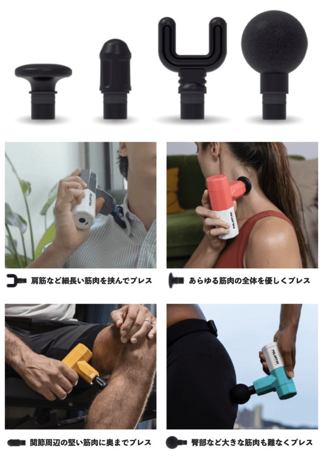 ▸ 付け替えヘッドと振動レベル設定で、インパクトも自由自在