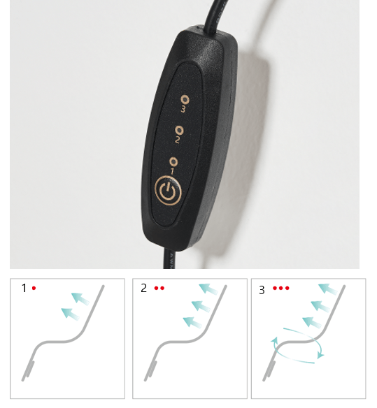 風量調整は3段階のステップボタン式です。簡単なボタン操作で好きな風速が調節可能です。持続的に均一で安定した強さの風をお子さまにお届けします。