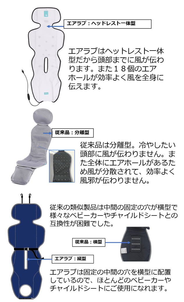 さらにエアラブはチャイルドシートを開発している経験から、様々な工夫をしています。