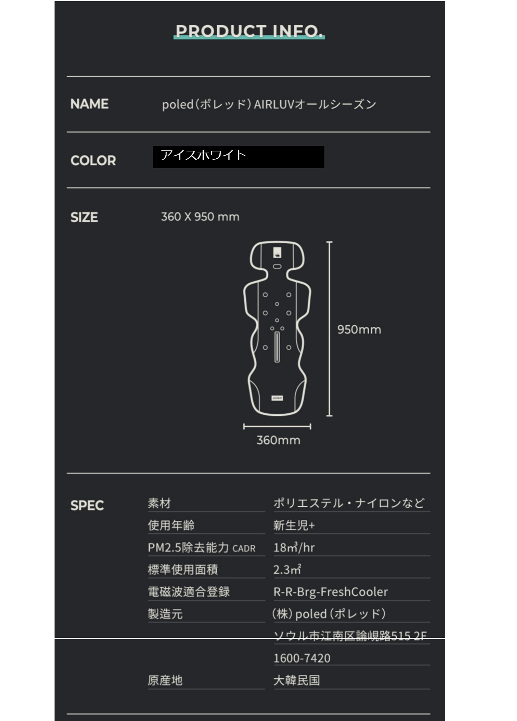 1段:(エアメッシュ):優れたクッション感があり風通しの役割があります。poled社の独自生産技術であるシルバーパールテクノロジーを採用しており、お子さまの移動時間に快適さを提供する工夫をしてます。