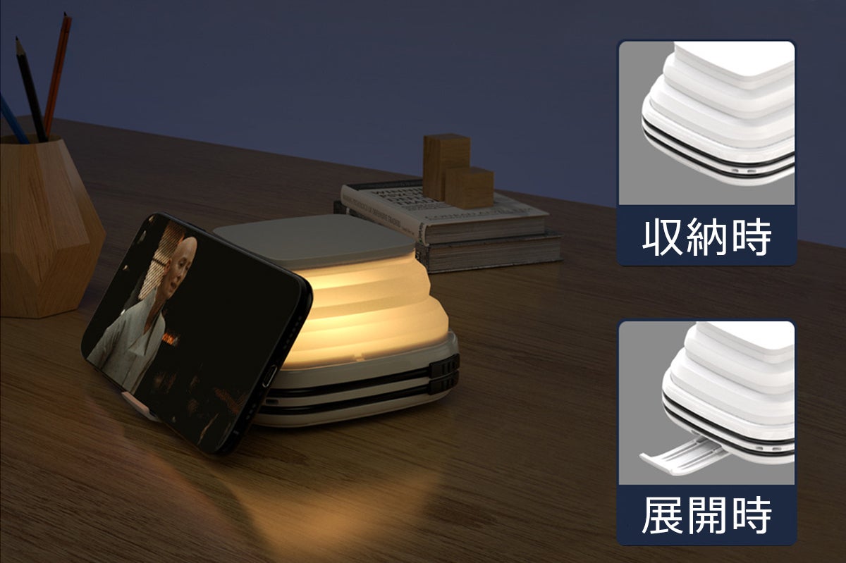 ■一台4役、ライト機能、常夜灯機能、スマホスタンド機能、モバイルバッテリー機能