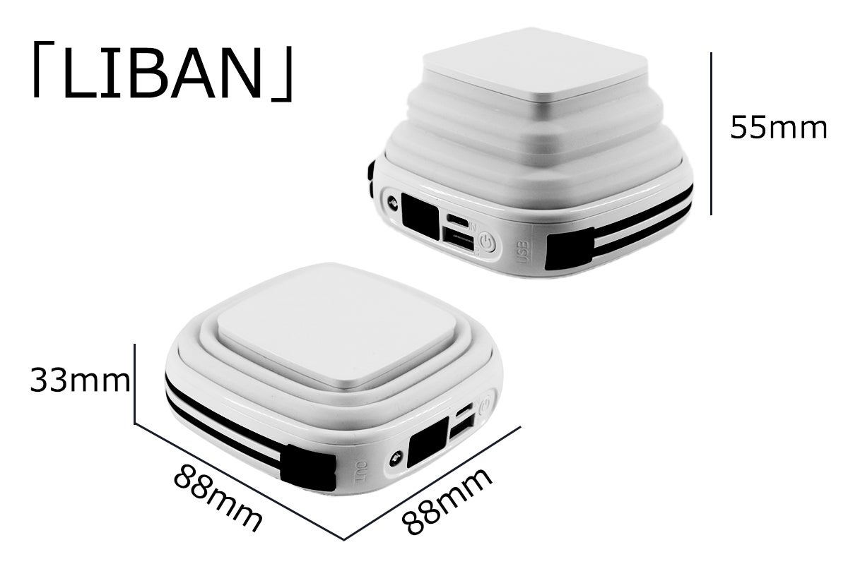 「LIBAN」には高密度で安全なリチウムイオンポリマーを採用したためです。市販のモバイルバッテリーによく使われるリチウムイオンと比べて、同じ容量の場合は、リチウムイオンバッテリーより大幅軽くなります。また、揮発性の電解液のリチウムイオンより、非揮発性ゲルの電解質のリチウムイオンポリマーは安全性がより高くなります。