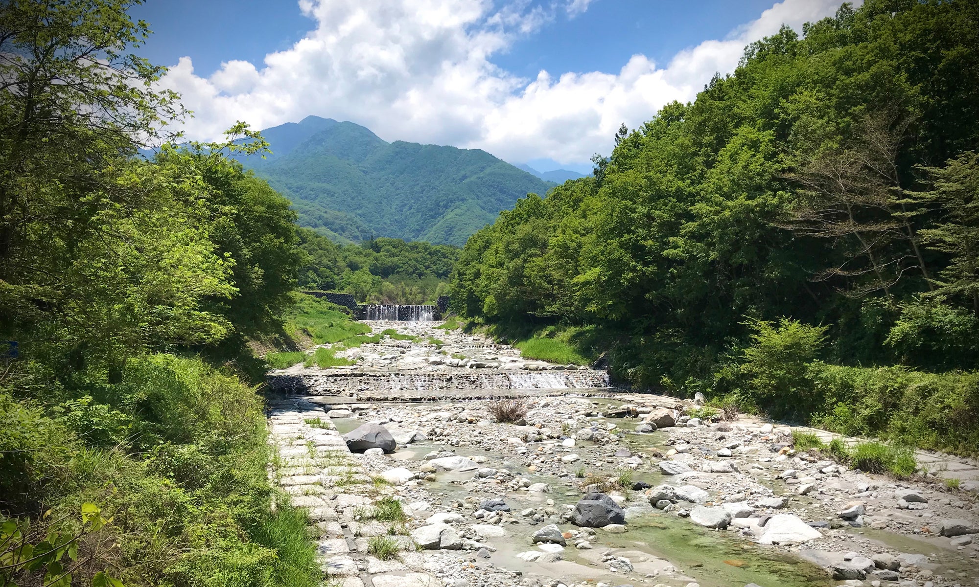 山梨県北杜市白州町、甲斐駒ヶ岳を正面に、連なる南アルプスの山々に囲まれた名水のまち。