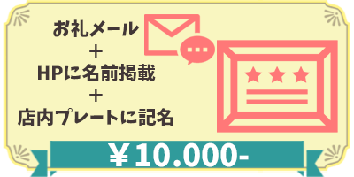 ・お礼メール+HPに名前掲載+店内プレートに記名 10,000円
