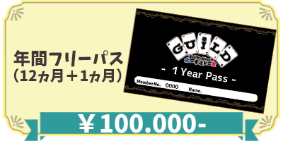 13ヶ月間のプレイスペース利用券です。初来店の際にお渡しさせて頂き、その日から13ヶ月間とさせていただきます。(特別イベントや一部営業日は除く)