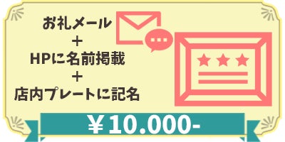 ・お礼メール+HPに名前掲載+店内プレートに記名 10,000円