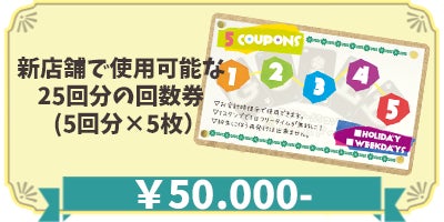 ・新店舗で使用可能な25回分回数券(5回分×5枚セット)+お礼のメール 50,000円