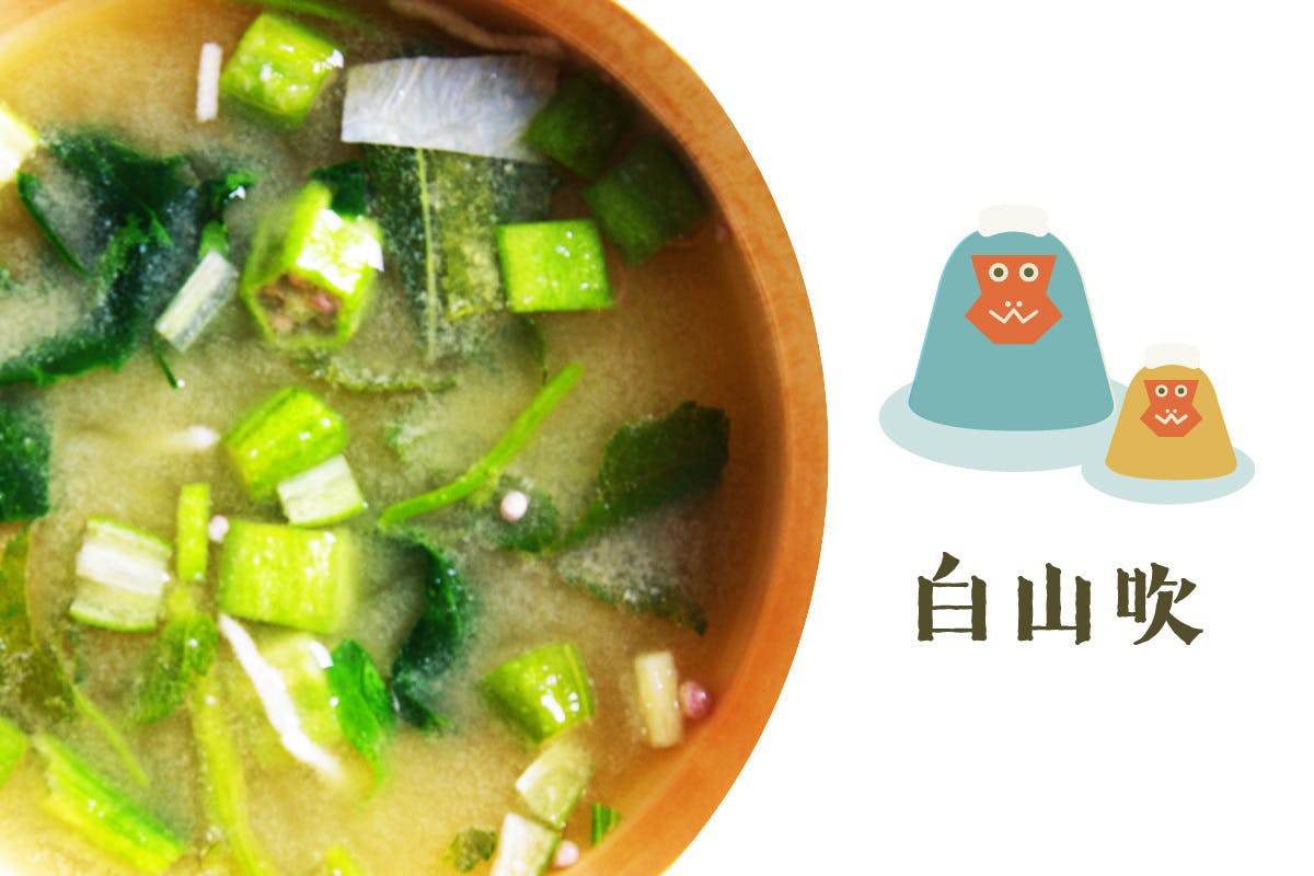 厳選した大豆・米・天日塩を使用し、熟成期間・自家栽培酵母などいろいろこだわりがある、信州白こし味噌です。具材はねばねば野菜のモロヘイヤと長芋とオクラです。
