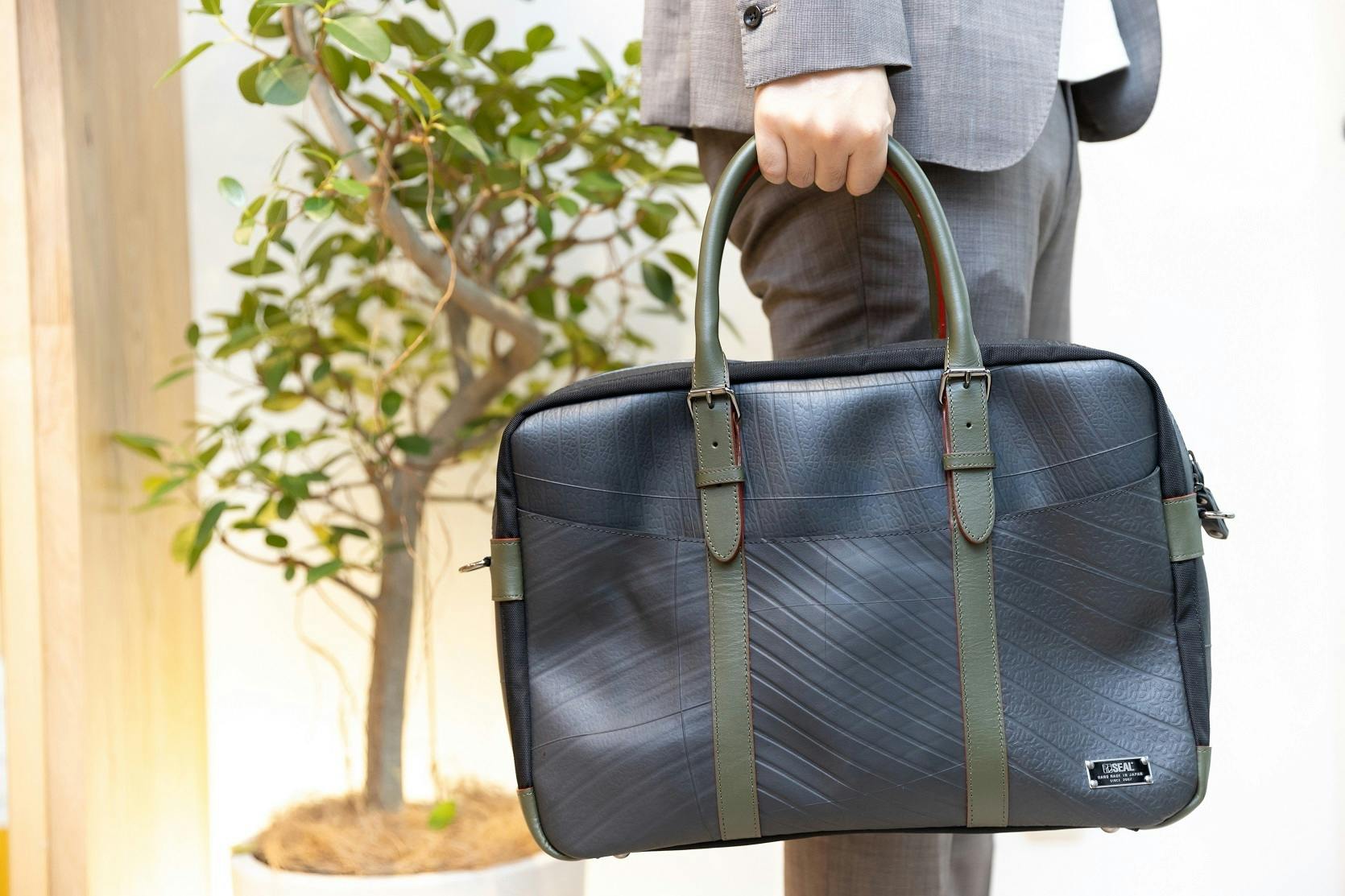 ↓消防ホースのロス材が素材(UPCYCLE LAB)
