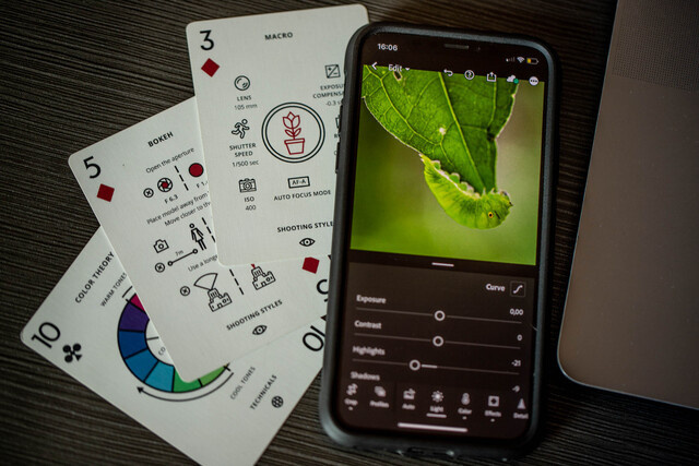 "The Photography Deck”はカメラを撮る上で覚えた方がよい知識を、トランプに詰め込んだユニークなアイテムです。いつでも手が届く場所に置いておけば、自然とスキルを覚えられます。また、トランプサイズなので持ち運びにも便利です。