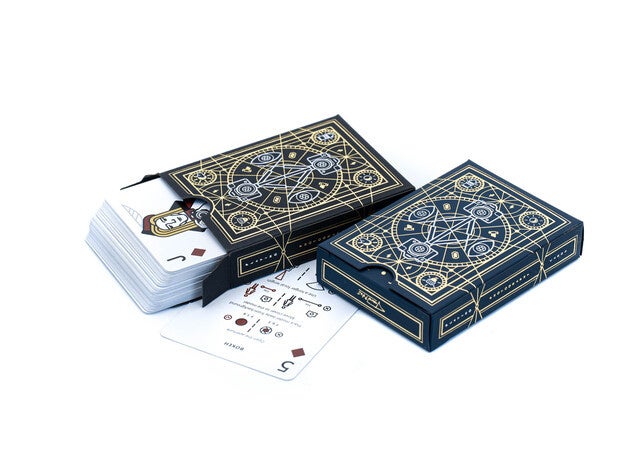 日本語版の素材は紙、色はブラックです。紙素材ですので防水性はありませんが、高品質のブルーコアペーパーを使用しており、非常に滑らかで手に良く馴染みます。この馴染む感覚がとても気持ちよく癖になります。暇があると触ってしまう感じです。ボックスは紙製ですが、頑丈で耐久性があり、美しい金と銀の箔押しとエンボス加工が特徴です。