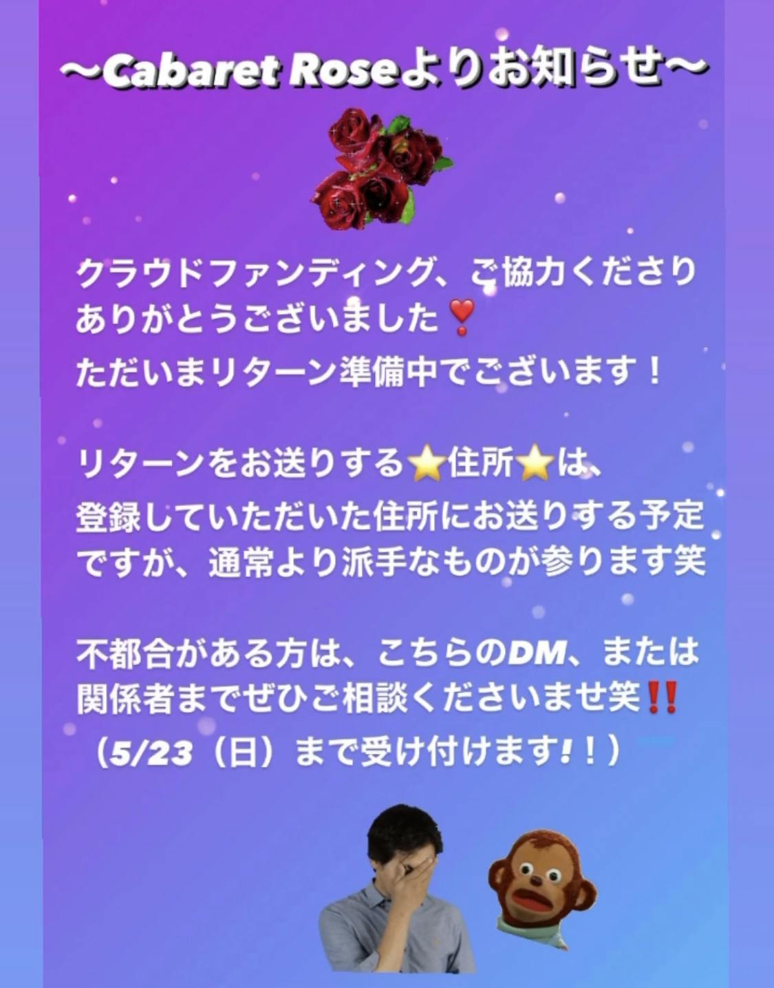 など、Cabaret Roseに関わる全ての経費に使用させていただきたいです。
