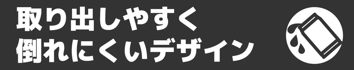 斜め13°の取り出し口と安定した台形フォルム。