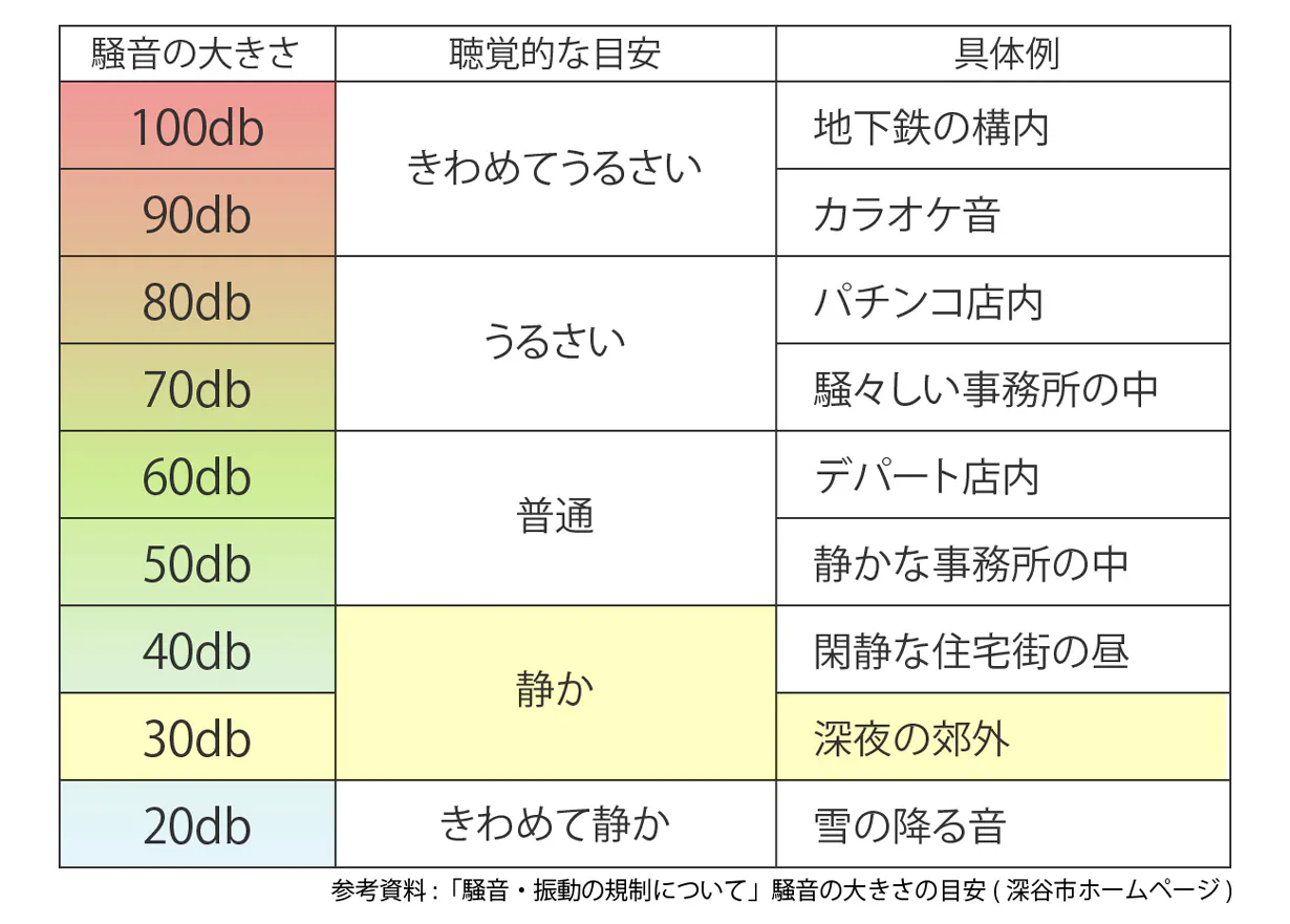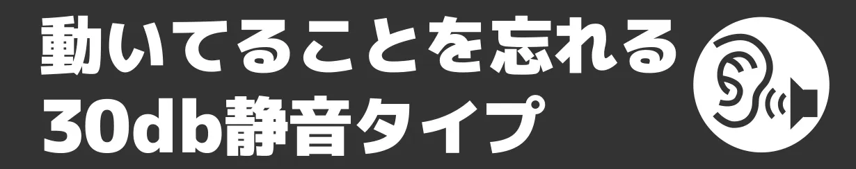 動作音量は30db、これは音としては「静か」な範囲の音量です。