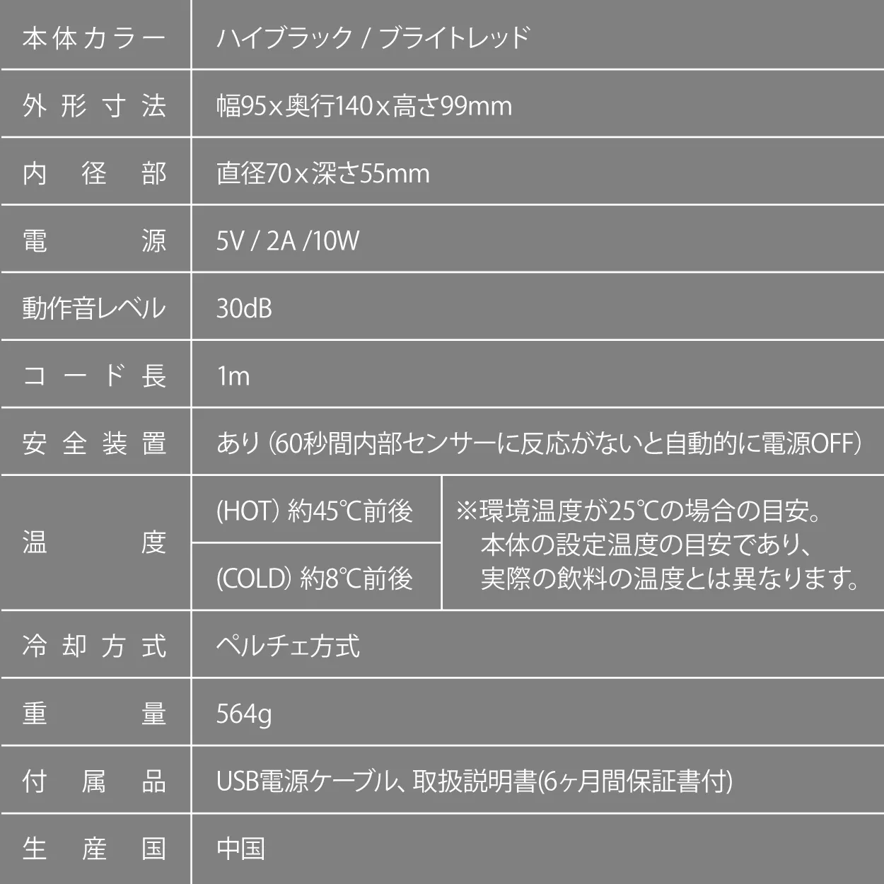 日本国内の流通であるコンビニ、スーパー、自動販売機があらゆる飲み物をおすすめ温度で売られていることに着目、自宅やオフィスのPC周りという行動範囲に美味しさと温かさ=保温・冷たさ=保冷の快適さを提供します。我々が保ちたい温度は、HOT 45℃・COLD 8℃、この温度の持続性がこだわりです。