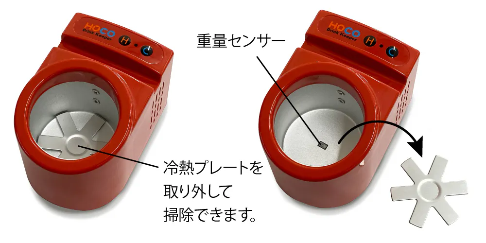 内部に飲み物をこぼしてしまったり、結露による水滴が溜まった場合は、冷熱プレートを取り外して、拭き取りを行ってください。
