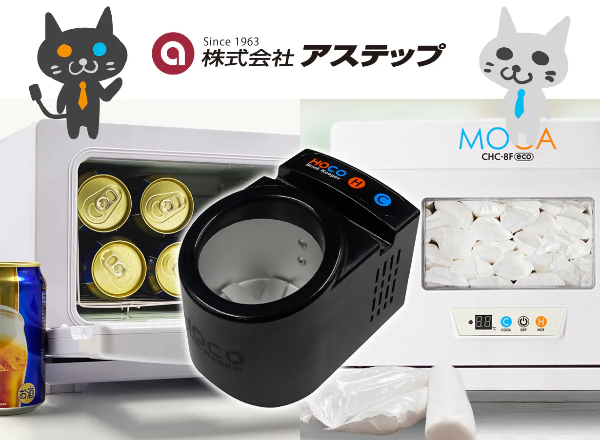 遡ること20年前の2002年に、ペルチェ素子による冷却/ヒーター線による温蔵の一体型という二つの機能を合体させたおしぼり専用温冷蔵庫MOCAを開発しました。