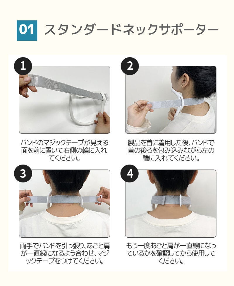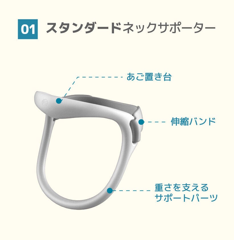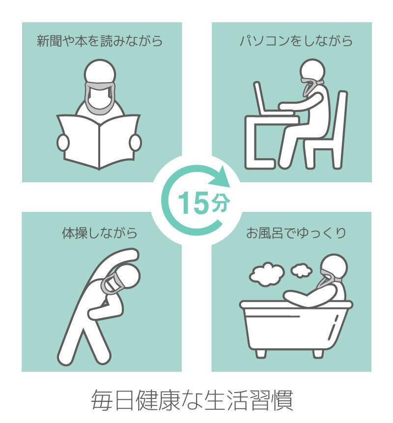 20代から50代の男女50人余りの頭の大きさと首の幅を分析し、1日15分の着用で、首と肩の負担を軽減できるように設計しました。