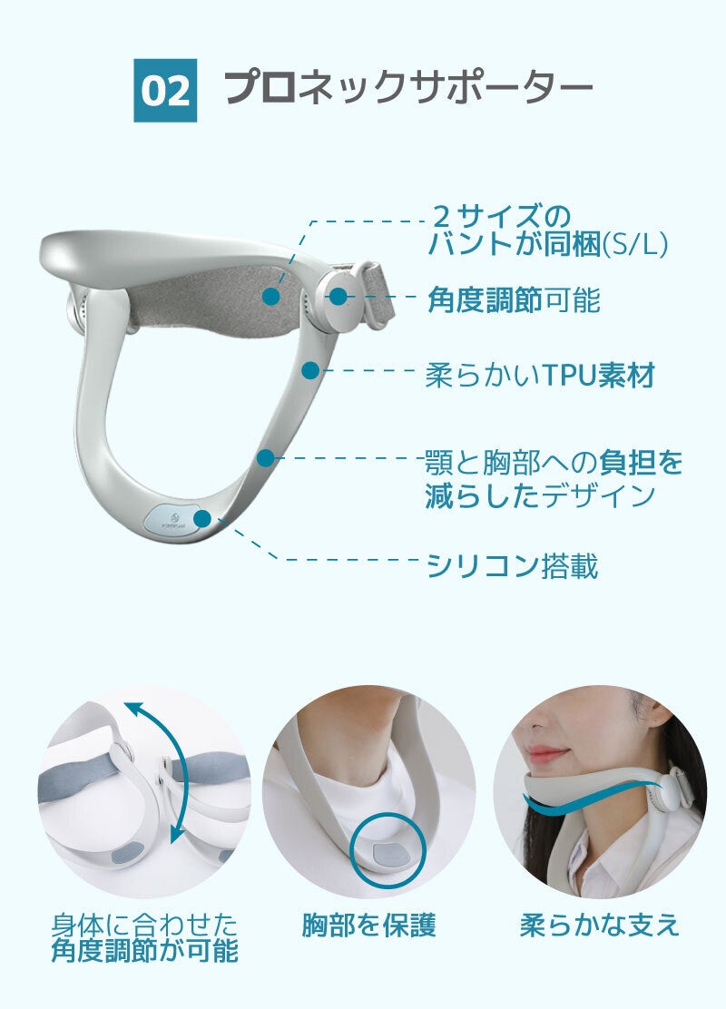 また、首を正常な角度を維持し、肩と腰も自然に伸びて、正しい姿勢を保つことができるようにサポートします。
