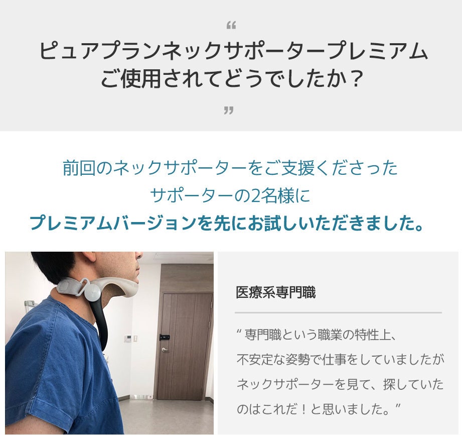 2021/08/26 19:12MACHIYAの皆様ご支援いただき誠にありがとうございます。『ネックサポーター』は直感的なデザインで、一日15分正しい姿勢で無理なく姿勢矯正し、続けられるところが魅力です。スマホを手放せなくなって現代!何より大事なネックをピュアプランネックサポーターで守ってください!引き続き応援よろしくお願いいたします! もっと見る