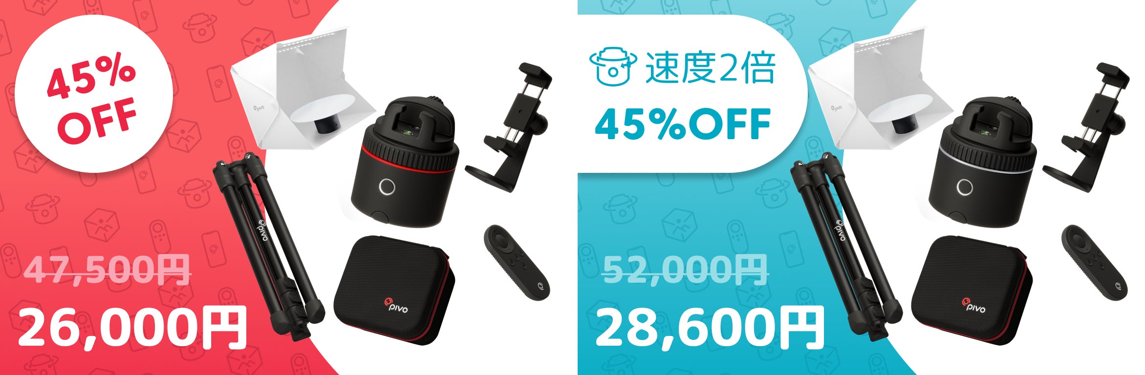 一般販売価格の45%OFFの価格(消費税・送料込み)でご支援いただけます。撮影の自由度を高めるSmart MountとTripod、Studio 360が付属しています。