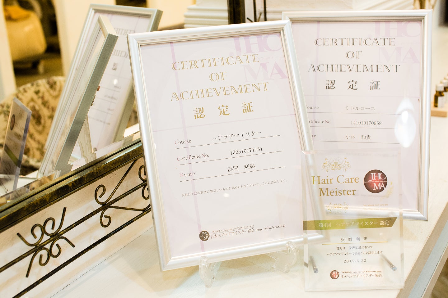 オーナー浜岡はマイスターの他に毛髪診断士の資格も持っているので