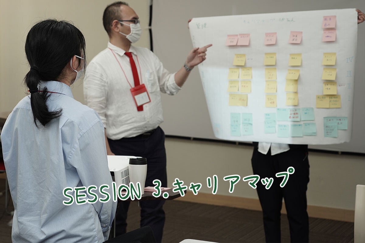自社にはどんな役職があるか?どんな役割があるか?を明確化します。タスクに対してスキルを4つのレベルに分解し、地図状に並べ、現在の立ち位置を社員同士で確認し合います。そして、未来にどの位置に行きたいかを話し合い、お互いのキャリアを見える化します。会社ごと部署ごとにキャリアマップをつくります。