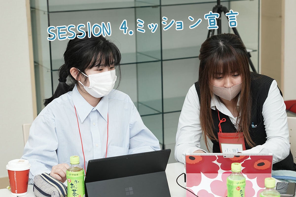 SESSION1~3で考えた『成果』『能力』『姿勢』に加え、『健康』と『プライベート』の目標を9×9マスのシートの『マンダラチャート』に入れて年間目標をみんな一緒に考えます。完成したマンダラは一人ひとりのミッションとして発表します。その時にその場の全員が1人の目標に対して自分ができること(協調アクション)を伝えます。この瞬間に1人の目標はみんなの目標になり、チームの目標となります。