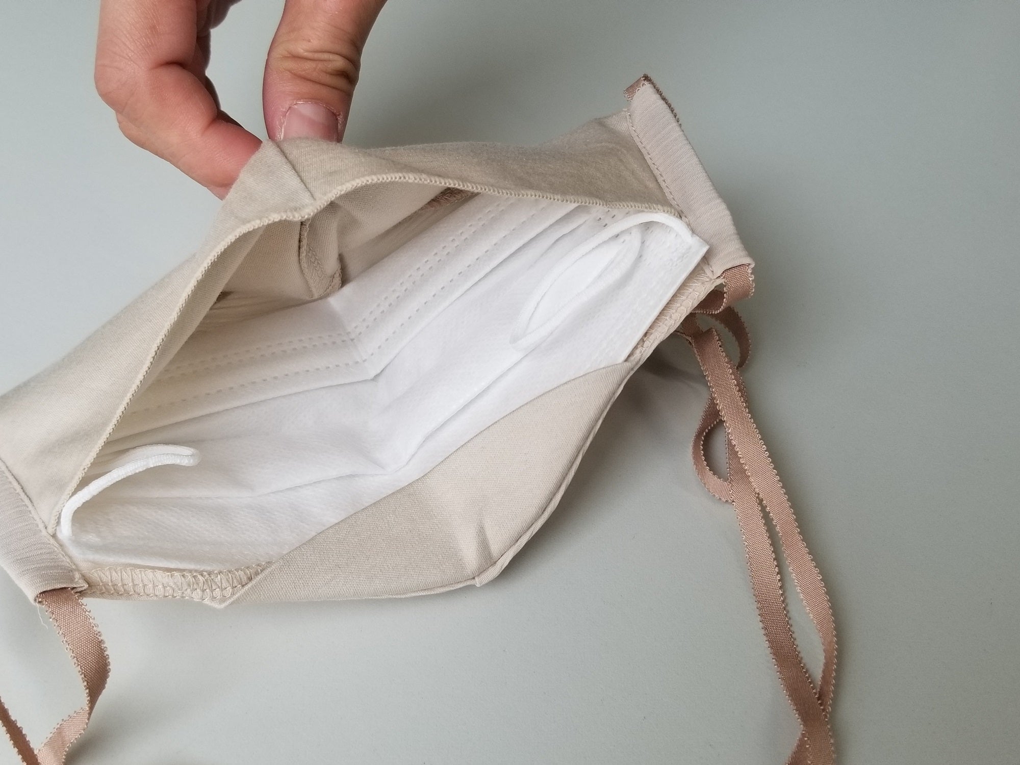 ①さっと入れるだけで普段の不織布マスクがオシャレなマスクに。