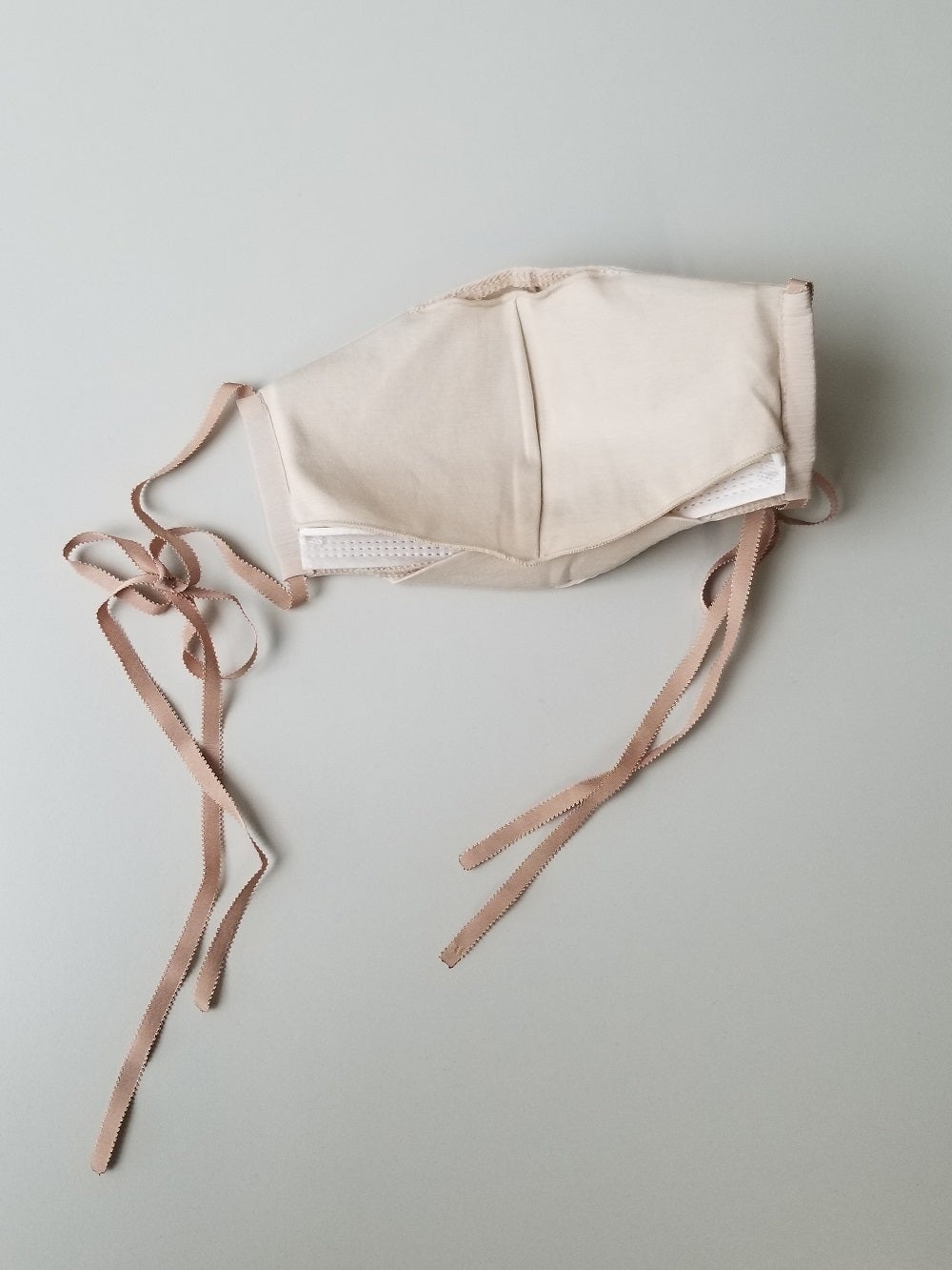 ●頬部分の生地巾を小さくすることで、不織布マスクの大きな印象をすっきりと!