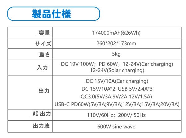 100Wの消費電力の機器であれば6時間稼働させることが出来ます。