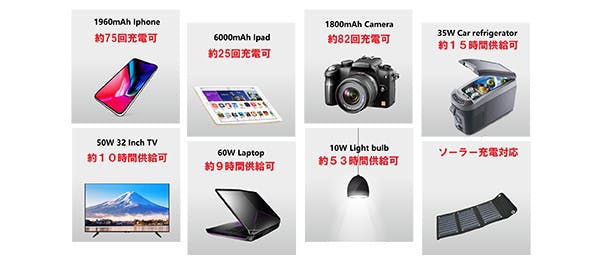 ドローンの電池の充電や、工具の充電、屋外での撮影にも