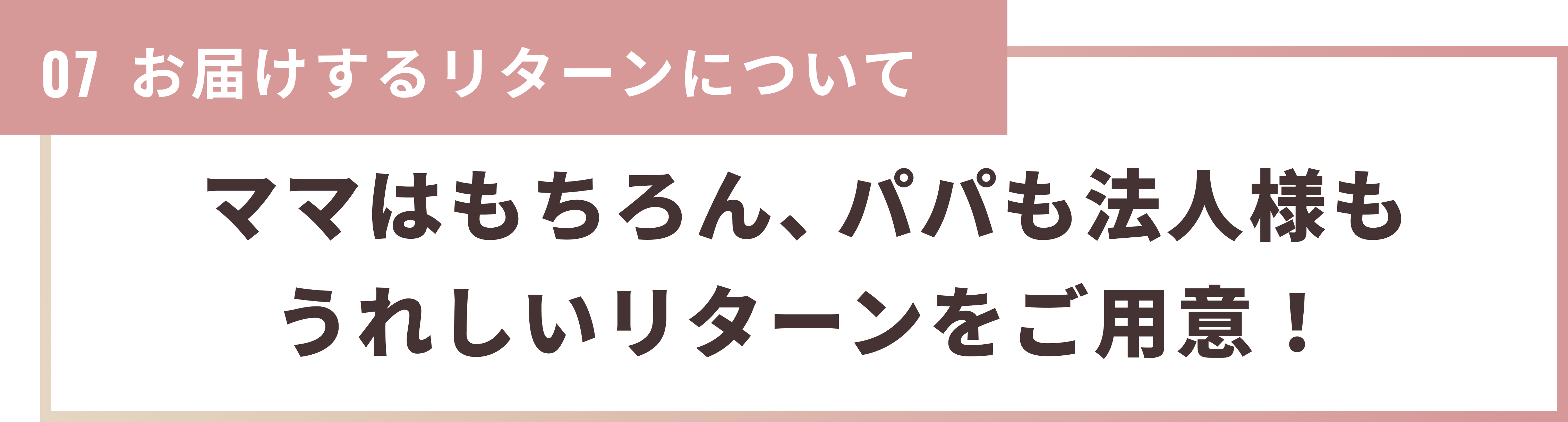 また、現役のミューアカ受講生ママたちにも「どんなリターンがあったら嬉しいか」を募集したところ、ユニークでママの心を掴んだアイデアがたくさん集まりました!(ありがとうございます!)