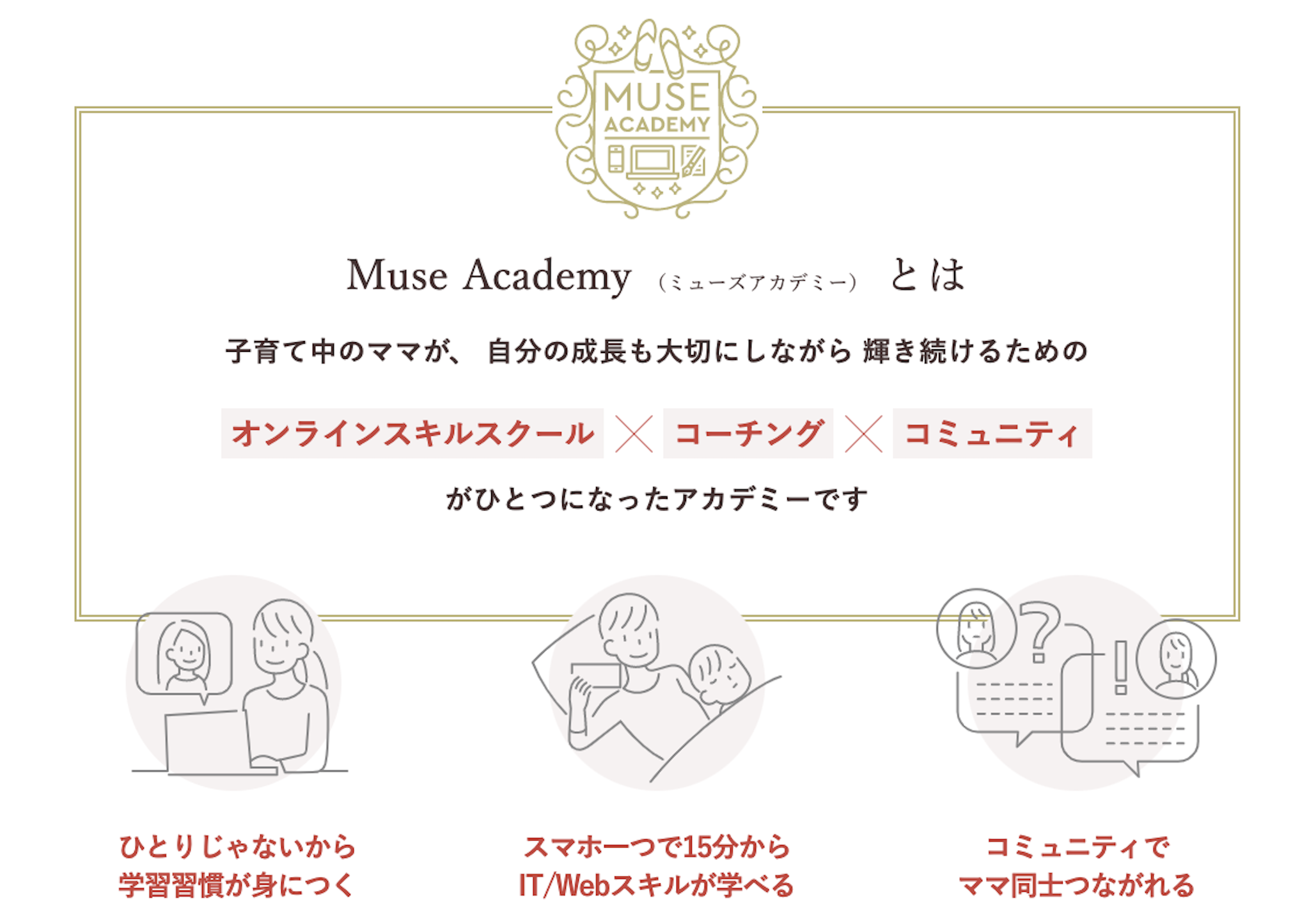 こんなママたちならではの悩みを受けて、2019年の春にWeb系ママのためのオンラインコミュニティ「Muse Academy」が誕生しました。