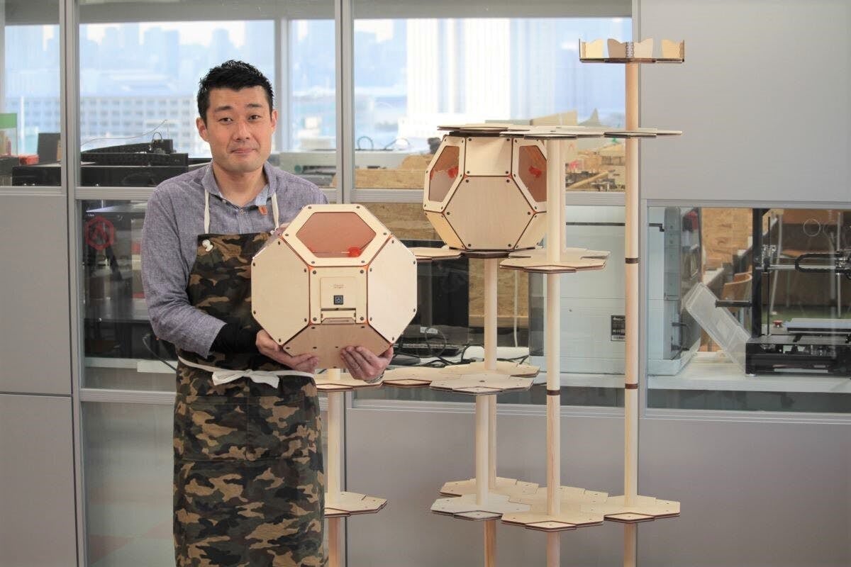 そこから、猫さんが登りたくなるキャットタワーを作れないか考え、タワーの高い所に、おもちゃや食事台を設置できるようにしました。そして昨年、猫さんは周りで何が起きているのかわかるけれど、きちんと自分のお部屋になっているアクリル窓付きの「にゃんこカプセル」を開発し、今回はその進化版となります。