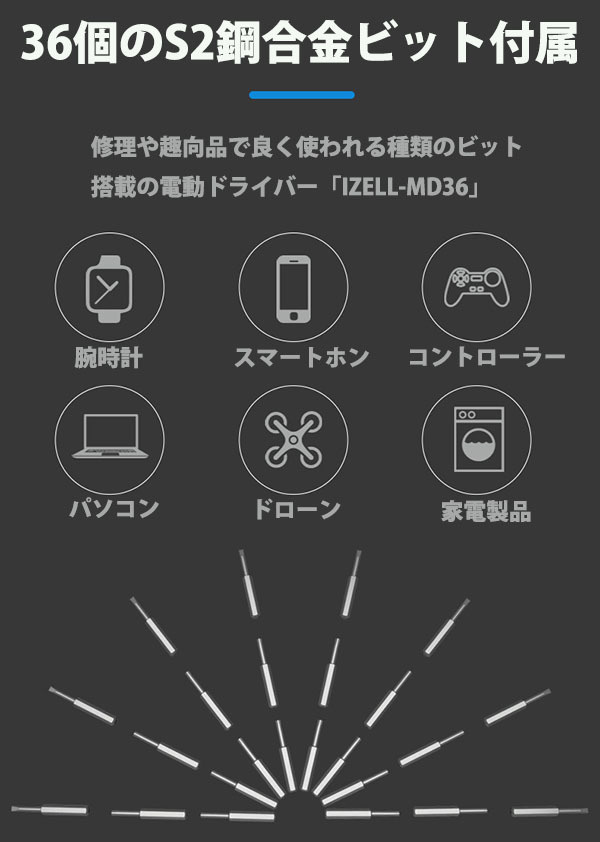 1・36種類のビットで様々な製品に対応し幅広く活躍