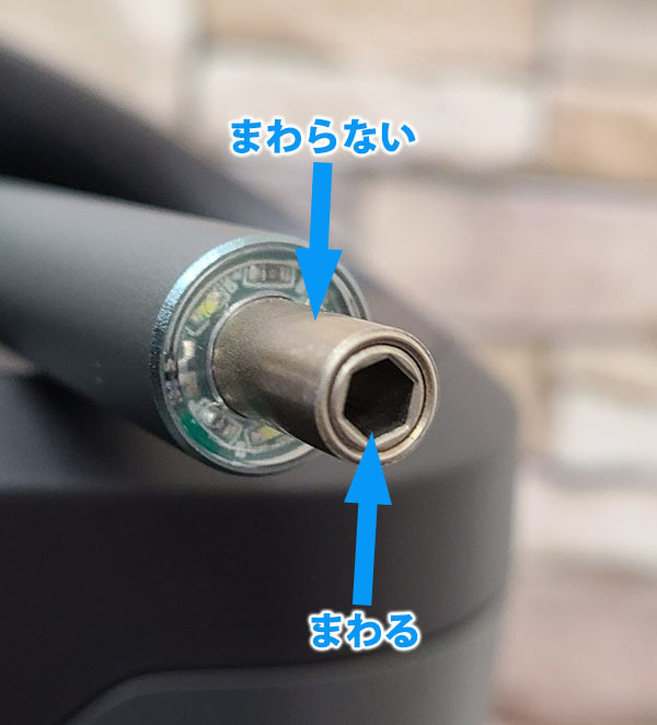 IZELL-MD36の先端は内側だけが回転する構造になっている為、スクリュー部分に誤って何かを巻き込む可能性を低くしてくれます。