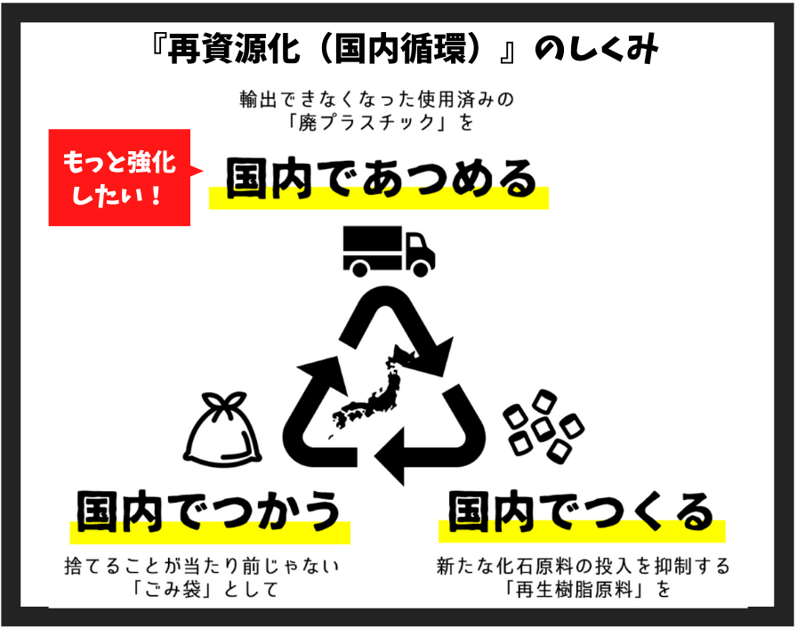 昨今の日本国内の廃プラスチック事情については、3つの課題があります。